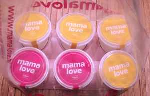 她有出了好幾款不同種的優格,我這次買的是紅色跟黃色,紅色是比較濃郁型的,黃色是比較清爽型的,兩個主要的分別示菌種的不同。老闆娘介紹,紅色是台灣的菌種,吃起來有比較重的奶香;而黃色吃起來就比較像一般市面上的優格,比較清爽,裡面的菌種有AB菌,可以抗過敏的那種。