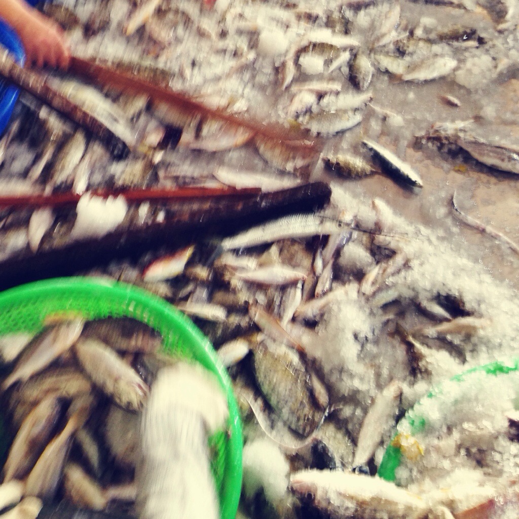 最後的戰利品,魚兒魚兒水中游。 我媽用身命去搶了一條大魚,其他就只剩小小魚了….. 星期一煮來吃,新鮮就是美味啊!!