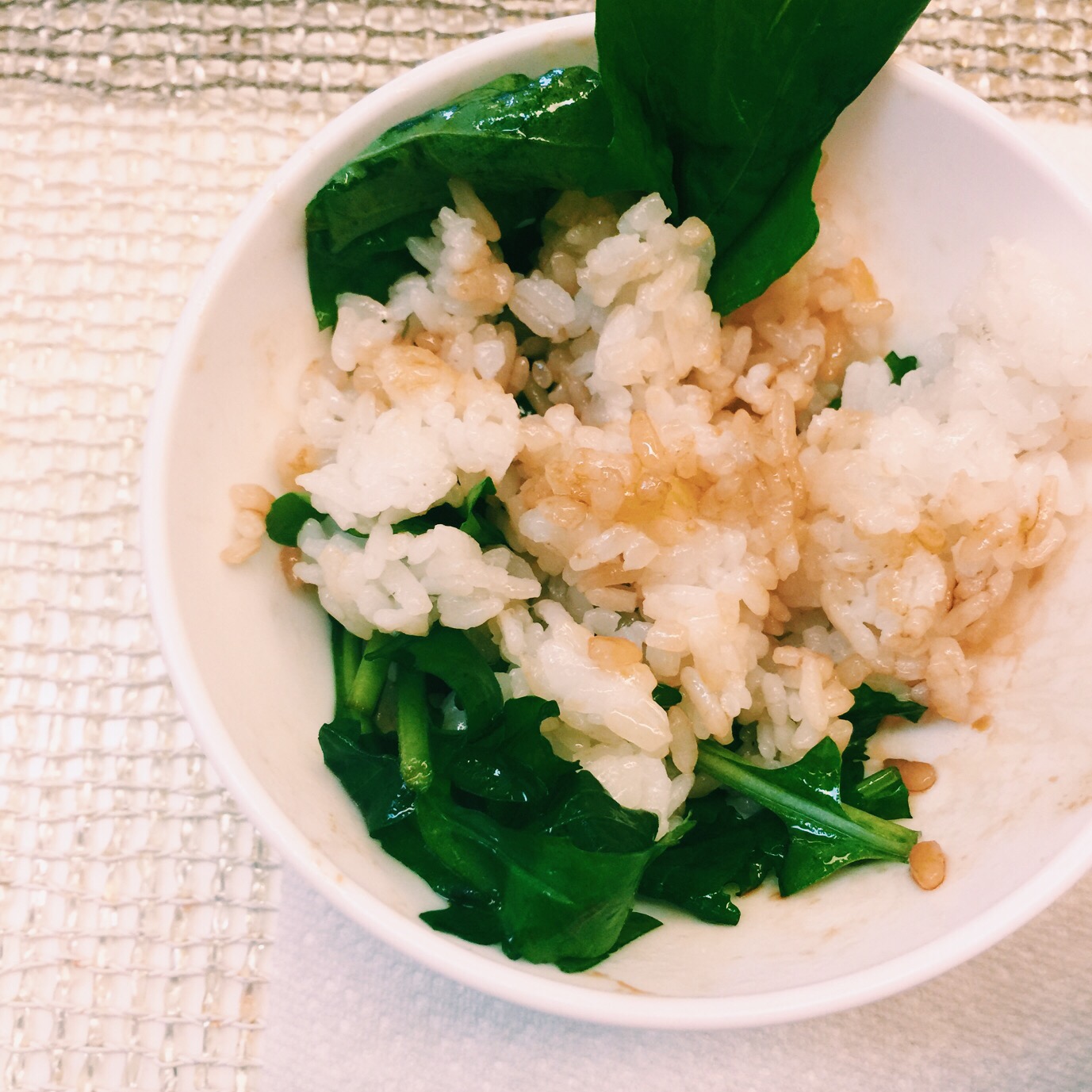 熱飯加了點豬油(自己炸的)跟有機薄鹽醬油拌在一起~香味又有蔬菜😌健康✌