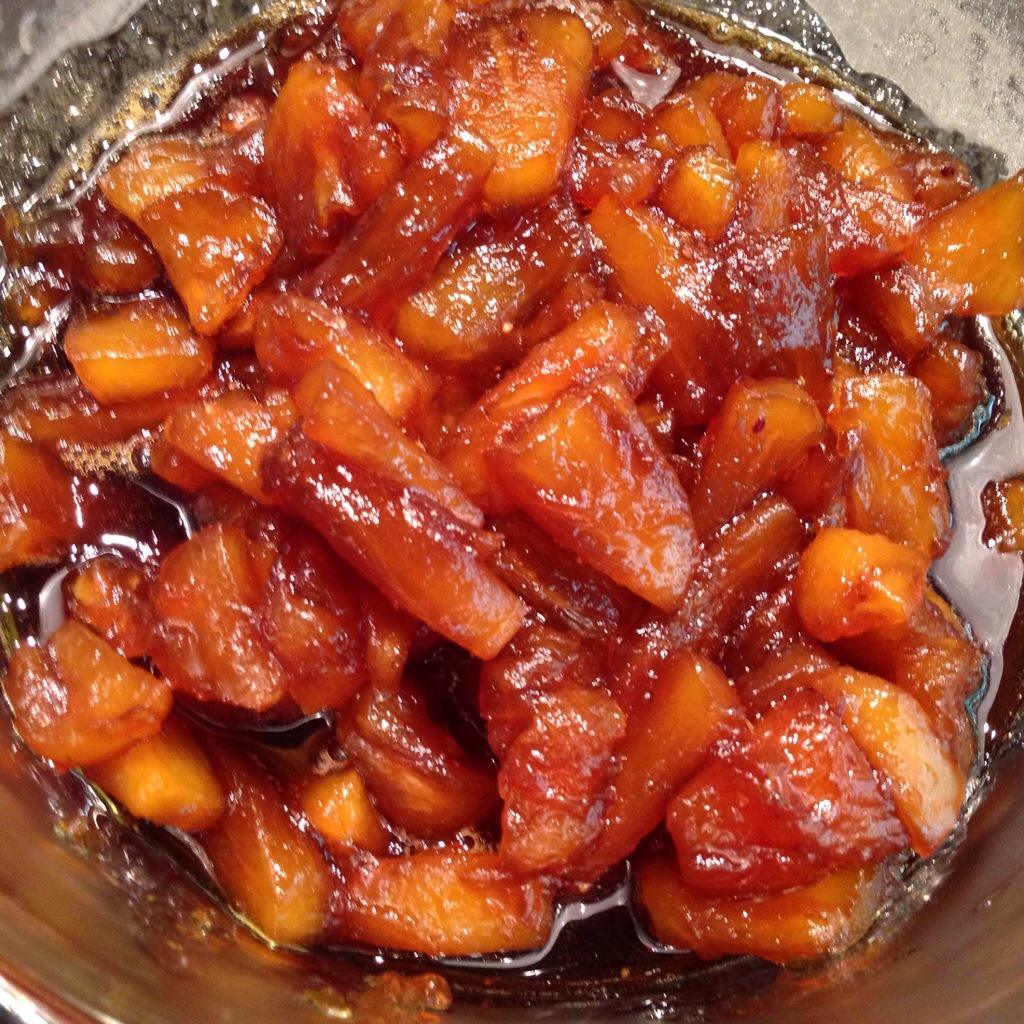 黑糖醬鳳梨好像是很傳統的一道甜點,做法也超級簡單,就是將鳳梨切成小丁後,加入黑糖,量的多少,必須依照當時的水果的甜度。因此,建議先加一些等全部的糖加熱後融化,嚐一下味道,再做調整。有時候太甜可以加一點檸檬提點酸味,增加口味的豐富性。