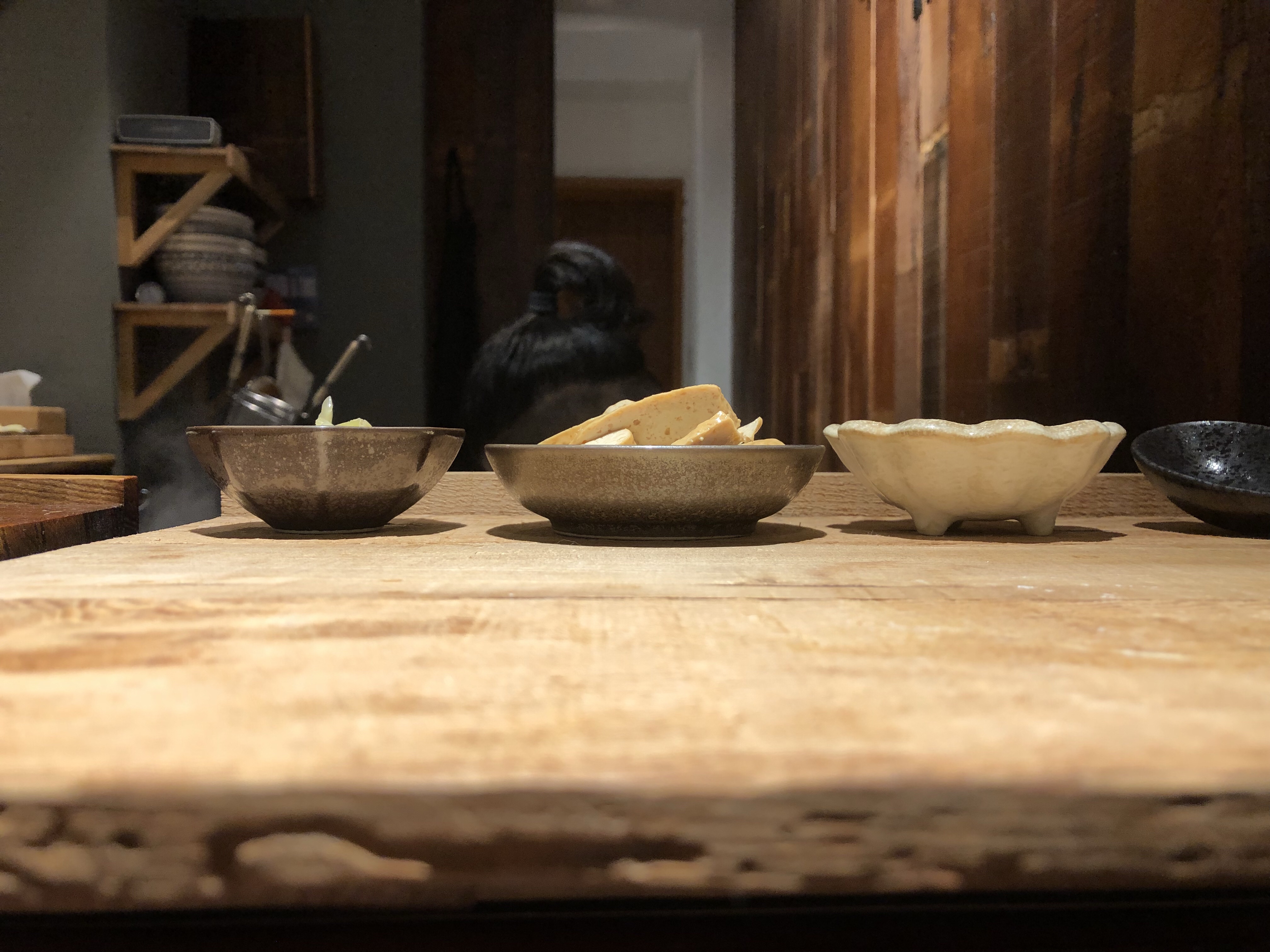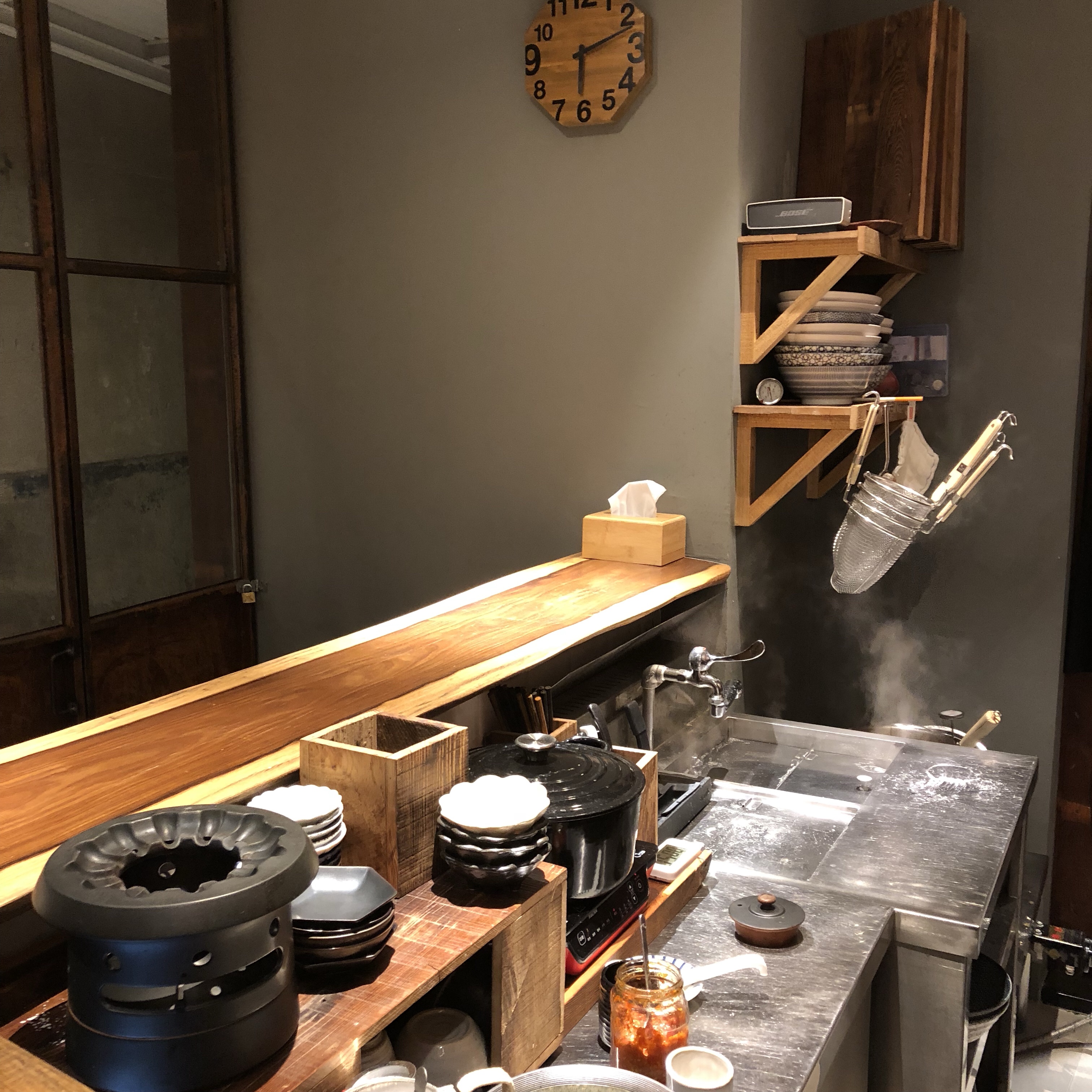 用餐環境人蠻多的,環境普普,我們是坐後面吧台區,可以看主廚再幹嘛,但缺點就是偶爾油煙會飄過來,空氣也比較熱。