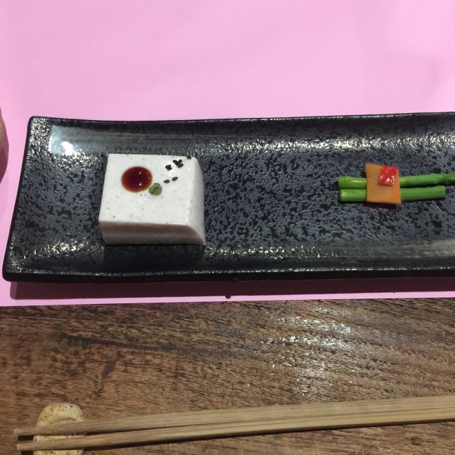 冷盤料理(新鮮的海膽,我第一次吃這樣的海膽,很神奇的是,沒有什麼濃郁的味道,就是一種軟軟綿密的感,讓我想起我平常在台灣吃的那種海膽到底怎麼了@@,海膽中間一樣是醬油的果凍,真的很好吃!主廚說市售的海膽都有添加一些保鮮的東西,所以口味都會變調…..然後,燻鮭魚片,還有冷的牛肉切片,整體吃起來相當清爽不油膩,很好吃)全部的東西搭起來都很不錯!