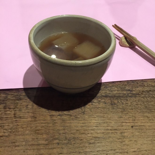 再來是湯品,牛肉清湯(喝起來好像台北的林東方牛肉麵的湯底,如果日本人來台灣,看來給它們一碗牛肉麵,就贏了吧),搭配簡單的麵包,麵包很香,口感很好,雖然一度被我拋棄在旁邊,但是姊夫吃了後說,很香很好吃,我也吃了,真的不錯。