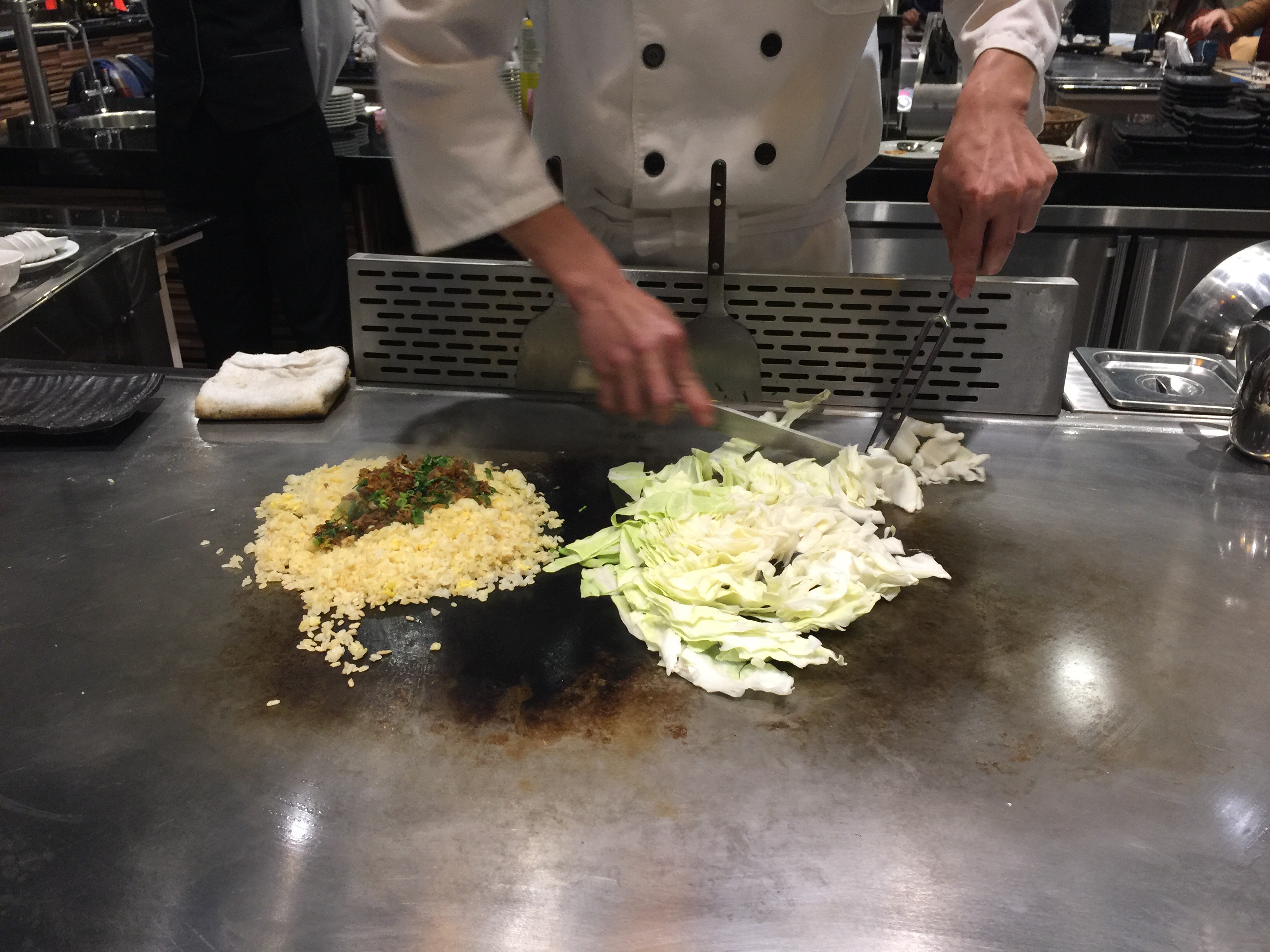 再我們邊吃冷盤的時候,主廚開始處理仙台牛,大家看看這個油花,可以感受到牠會是多麼的好吃了吧! 在東北地區,仙台牛算是很高級的,更高級的叫做[米澤牛],價格又是更不一樣了。