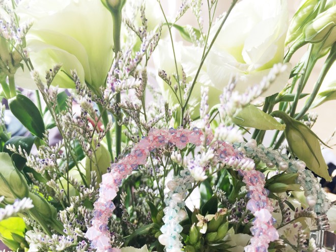 藝術家對於色彩的搭配敏銳度都令我驚豔。有時候她也會跟我建議手鍊的色彩。