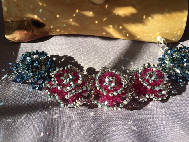 手鍊全部使用高級的施華洛世奇Swarovski的水晶珠,水晶珠從串珠到編織,因為要讓水晶的顏色均衡的六色分佈,所以,花了很多時間在串珠上,再配上925銀釦,呈現出美好繽紛快樂的色彩,我有拿給很多朋友看,他們都還蠻滿意的。