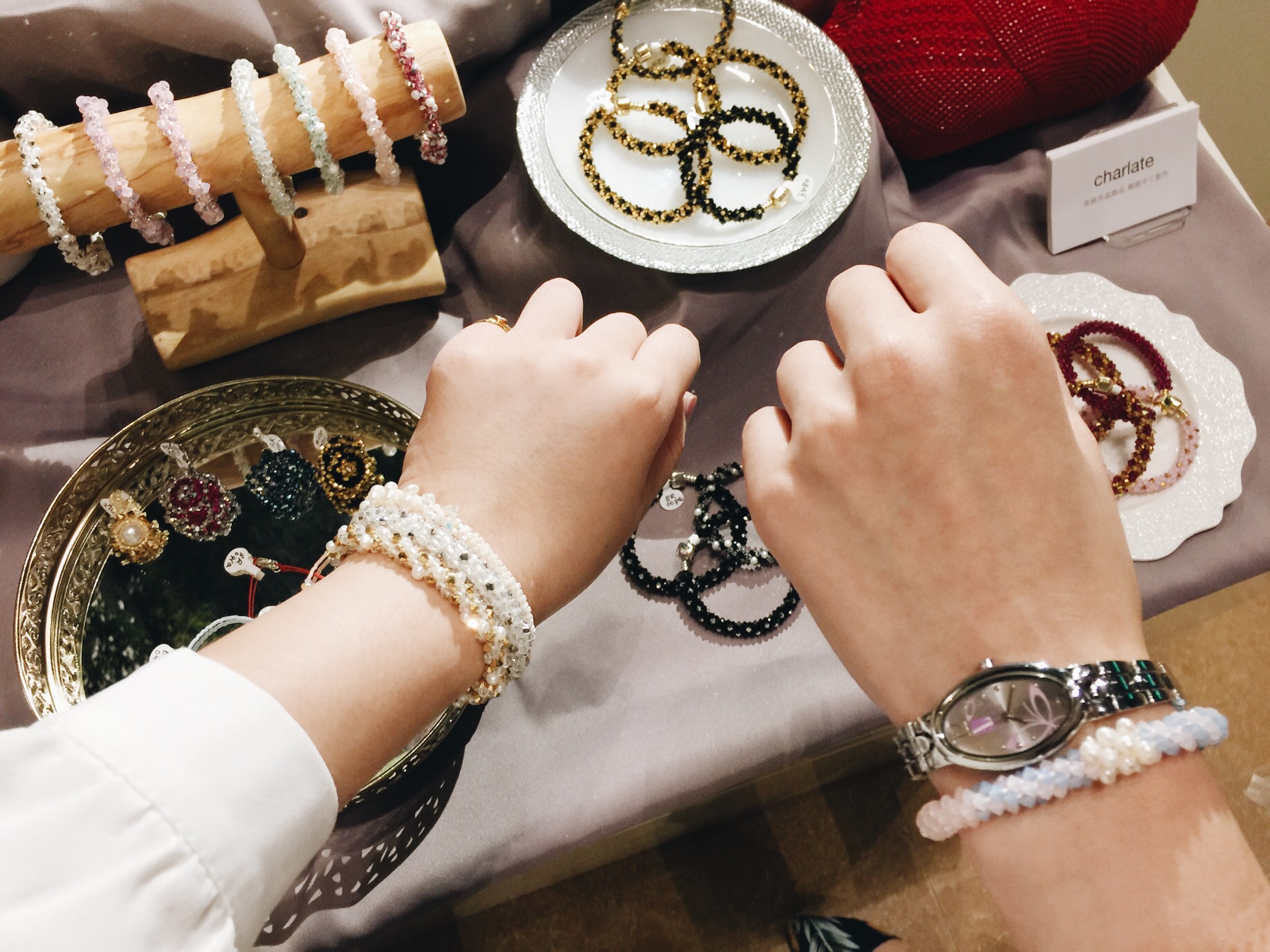 {brand} 台灣設計精緻手作飾品品牌charlate 京站展售 手鍊搭配照片分享