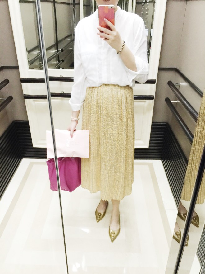 下圖特別拍裙擺的銀蔥布,我剛好有一雙一樣色系的鞋子,鞋子是我在日本買的,那雙鞋真的是太高,穿起來有點累….但是,它完全適合我的裙子。