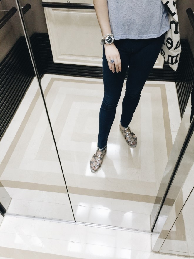 再來就是這雙涼鞋,也是我的愛,我很喜歡銀色的鞋子,因為夏天很好配衣服。重點鞋面上方有珍珠點綴,穿起來會很優雅又好看。這款我還有金色的,這款超特別,走在路上一定會被關注。