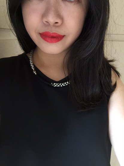 衣服的上半身是簡單的沒有什麼變化,所以剛好可以配 charlate手鍊,將手鍊變成一條漂亮的項鍊,charlate手鍊可以拼接成項鍊。 洋裝配上紅唇,就會感覺到氣勢,淡妝只要配上紅唇就會有一種厲害的感覺。