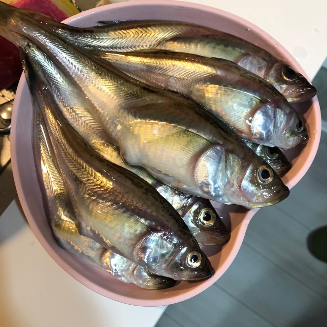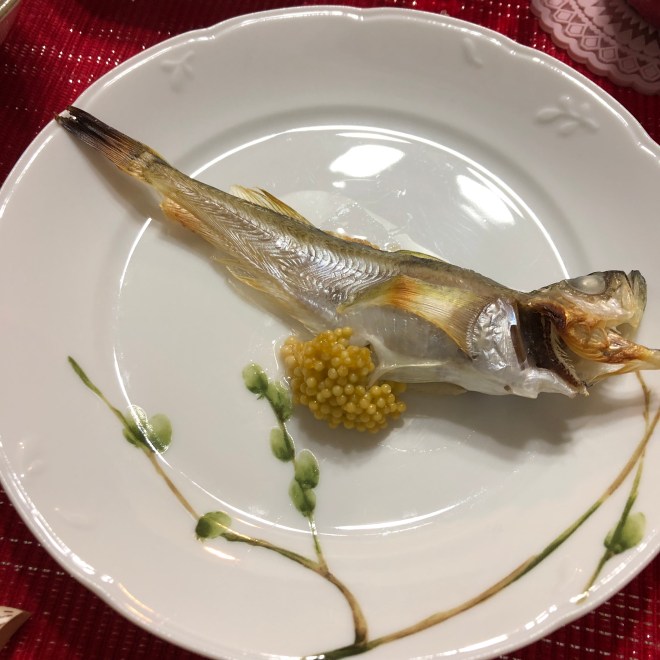 仙台的12月份超市充滿了一種魚叫做HATAHATA,這個魚的特色就是會爆蛋,你煮了之後魚的蛋就會從肚子噴出來,很有趣,然後她整條都可以吃下肚。它的蛋蛋很稠很牽絲,用烤得很好吃,應該是充滿膠質,如果有機會12月去日本東北地區,你們可以嚐試點點看,很好吃喔。