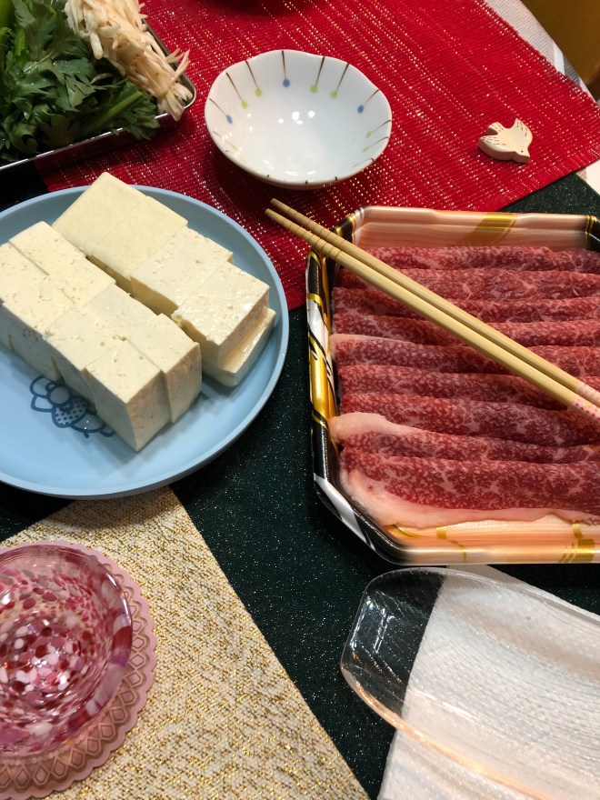 自己去超市買和牛回來吃,價格合理很多。 日式人妻就是要洗很多碗盤@@…. 日本的豆腐也很貴,吃豆腐有時還比雞肉貴,恩,大概是做豆腐的人的薪水比殺雞的人來高? 難懂