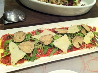 生牛肉- 生牛肉搭配松露、起司、粗鹽、和芝麻菜(