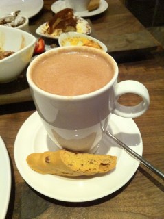 熱可可與拿鐵咖啡- 熱可可是甜的那種,奶泡打的很細,杯子夠熱,但是搭配甜點不優,會太甜。