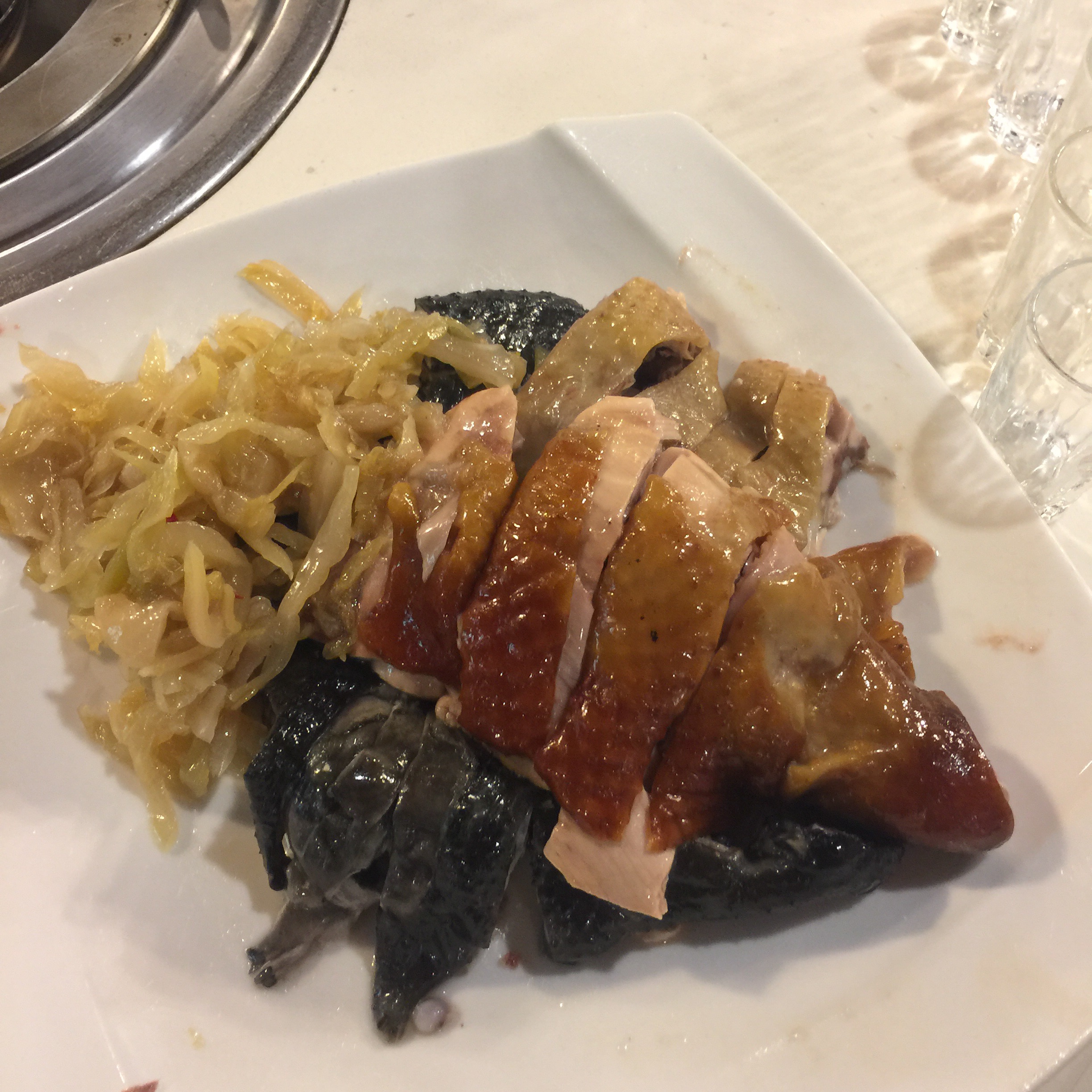 一種西港合併的感覺,就是港式燒鴨口味配上義大利麵的麵條。 還記得,以前歷史課本有學過「中體西用」貓下去的菜,讓我就有這樣的感覺。
