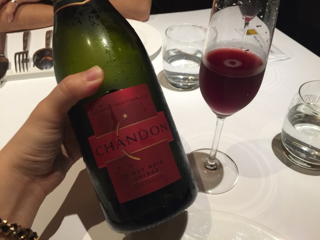 上次去香港的時候終於看到了chandon的紅色汽泡酒,(就是香檳酒,但是不是法國的香檳產區,不能叫香檳,只能叫汽泡酒)之前在墨爾本的時候有喝過,覺得很喜歡,而且紅紅的汽泡感覺超開心的,喜歡這種紅色的酒色。