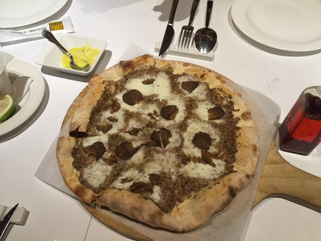 松露披薩 (薄餅披薩)單純的松露味道配上起司感覺,清爽的感覺。