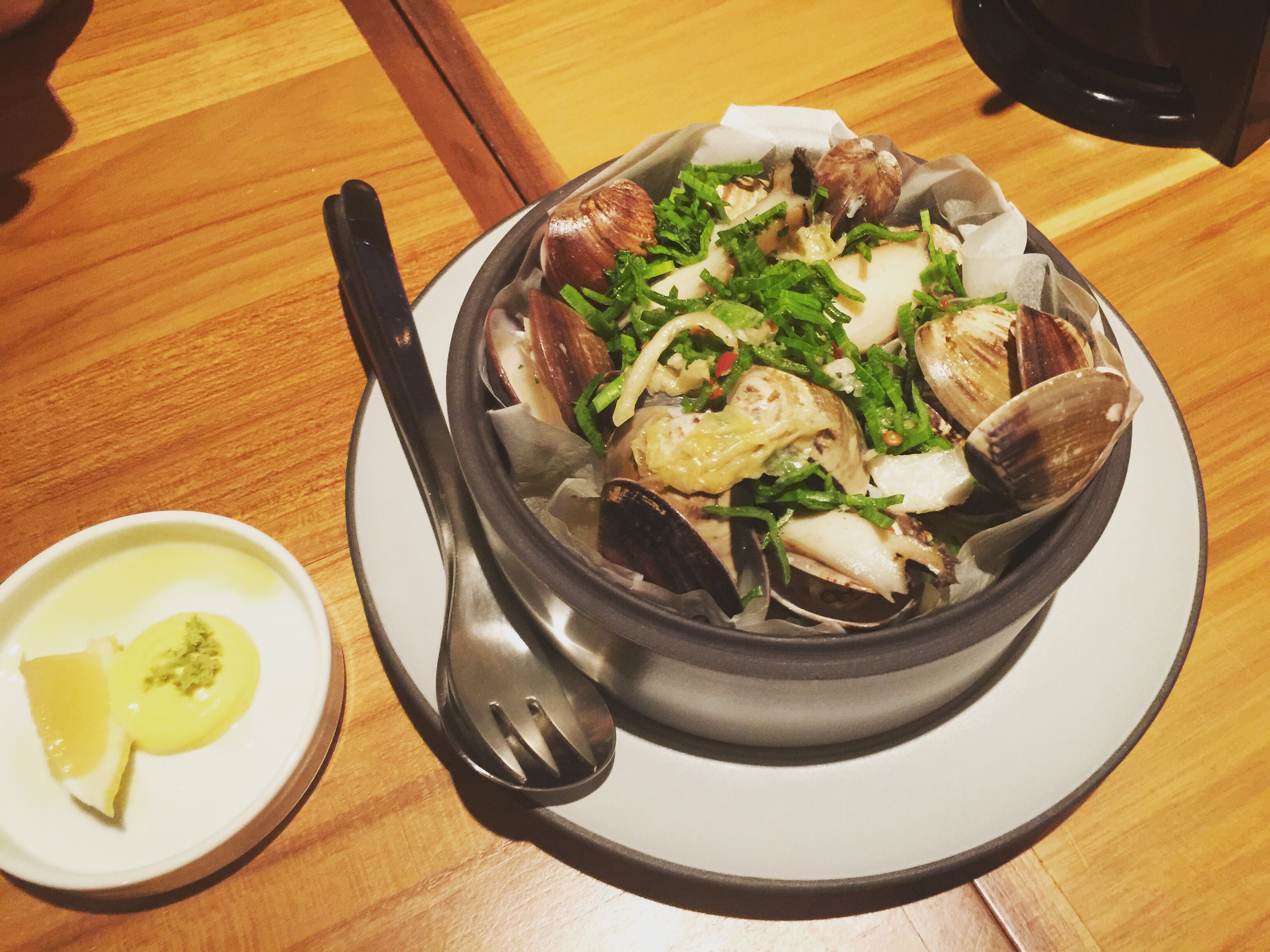 這道菜被我挑嘴的娘親稱讚,她說這道可以學起來,就是泡菜蛤蠣,有點西式卻有一點台台的?