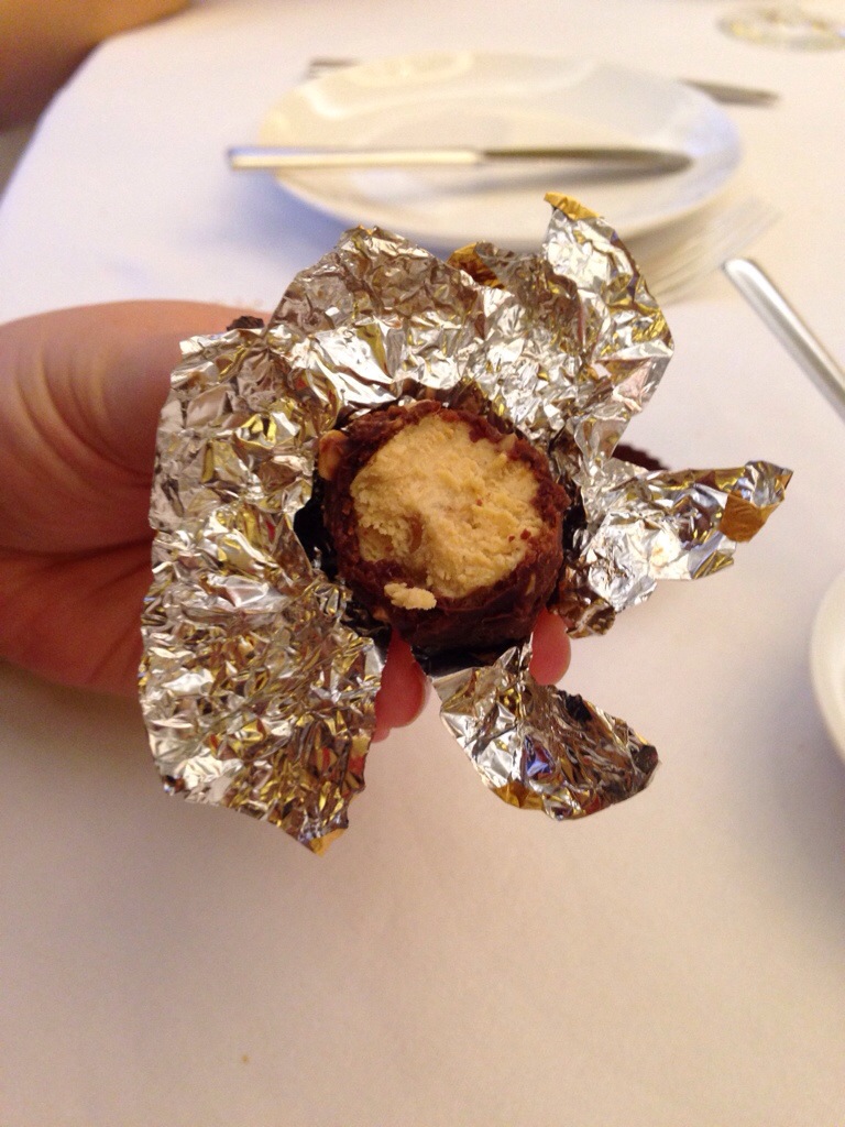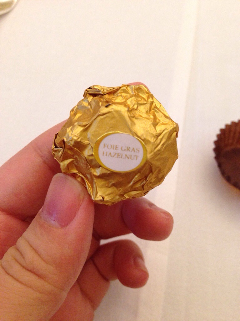 看起來好像是金莎,但這是主廚特製的鴨肝榛果小點,外脆內軟。