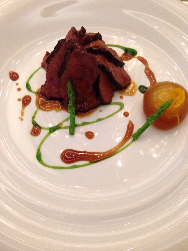 鴨胸不要看這樣小小的,它疊了好多層,肉煮得剛剛好,很不錯。 類似生蛋黃的圓球,裏面是橙汁做的醬料,吃起來普通,我覺得沒那麼配…