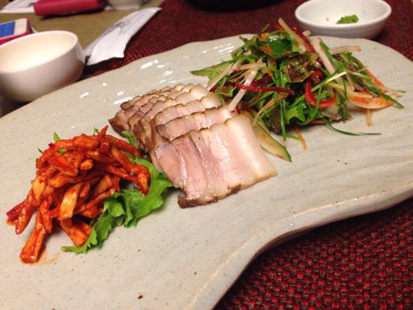 韓國的菜色很多都有麻油的味道,尤其涼拌菜吧!像是之前吃三層肉也會沾白胡椒與麻油,但我不太懂這個吃法,因為三層肉已經超香了,為什麼還要沾油? 這待我下次再問其他人。